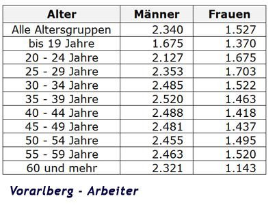 Vorarlberg: Bruttogehälter der Arbeiter