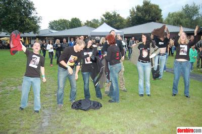 Freunde und Bekannte von "Bruce" haben sich vor der Bühne versammelt und verabschieden sich mit selbst gedruckten T-shirts.
