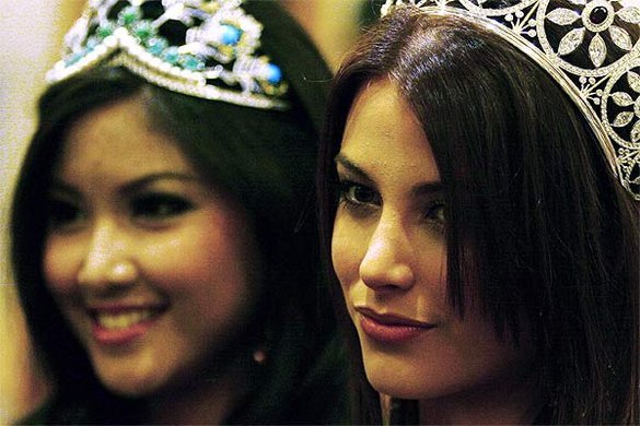 Miss Indonesia Zivanna Letisha und die frisch gekrönte Miss Universe Stefania Fernandez in Jakarta.