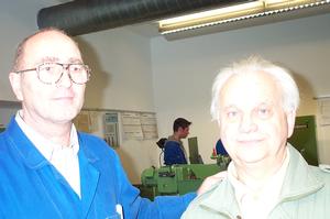Norbert Spalt (Fachlehrer in der Schleiferei) und Helmut Riedmann.