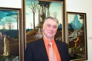 Alwin Rohner vor dem …gemälde "Glaube, Hoffnung, Liebe" , welches sich in seinem Privatbesitz befindet.