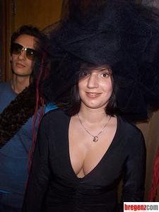 Nicole präsentiert einen riesigen Hut.