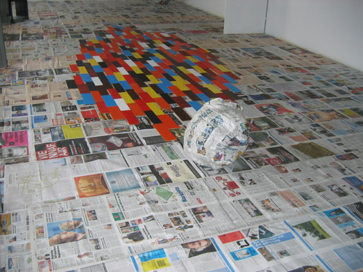 Rauminstallation mit Fotografien und Textmontagen