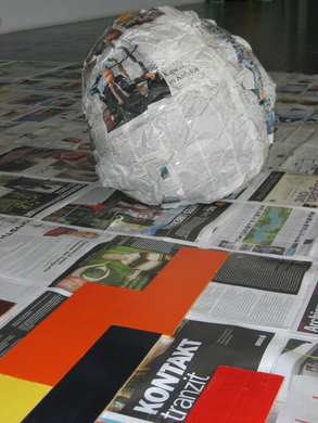 Rauminstallation mit Fotografien und Textmontagen