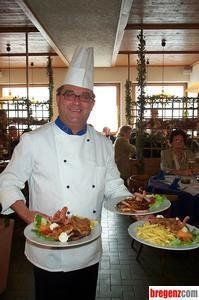 Küchenchef Alfred Bertsch servierte am Weißen Sonntag gleich fünf Erstkommunikanten mit ihren Familien ein köstliches Mittagessen. Die Kindergärtnerin Michaela betreute die Kleinen. Alle Erstkommunikanten erhielten von Monja Bertsch ein kleines Überraschungsgeschenk.