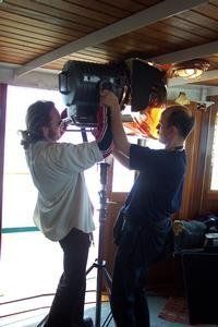 Scheinwerfer werden installiert.