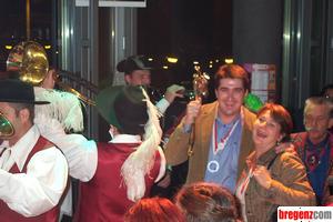 Mit Fanfarenklängen wurde das neue Bregenzer Prinzenpaar Walter Egle und seine Gabi von den Altprinzen und Prinzessinnen sowie zahlreichen Faschingsnarren in der Panoramadisco "Calypso" empfangen.