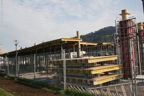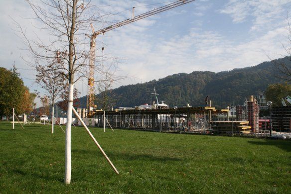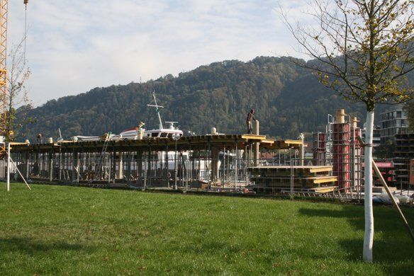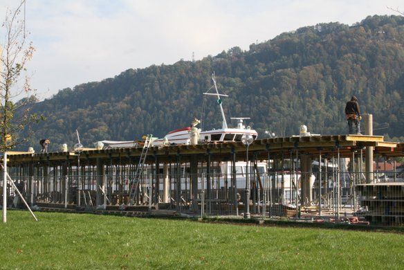 Bregenz – Die Bauarbeiten am Hafengebäude sind im vollen Gange. Es steht bereits ein Rohbau.