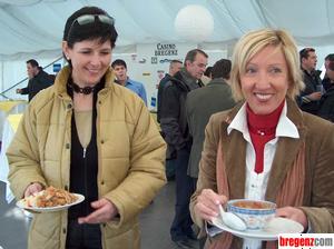 Christine und Andrea bedienen sich am reichhaltigen Buffet.