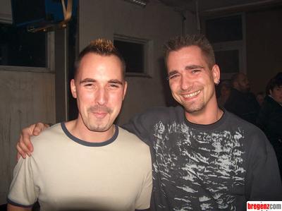 In einer Garage in Hohenweiler, in der sonst Autos getunt werden, fand am Samstag Abend Uwe´s Geburtstagsparty statt. 30 Jahre sind ein Grund mehr, um mal ordentlich die Fetzen fliegen zu lassen. Freunde, Bekannte und Verwandte waren gekommen, um mit ihm ausgelassen bis in den Morgen hinein zu tanzen, trinken und zu feiern. Im Bild: Uwe mit Bruder Thomas.