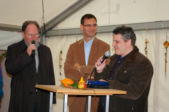 v.l.n.r.: Bürgermeister und LAbg. Werner Huber, Landesstatthalter Mag. Markus Wallner und der Musiker George Nussbaumer