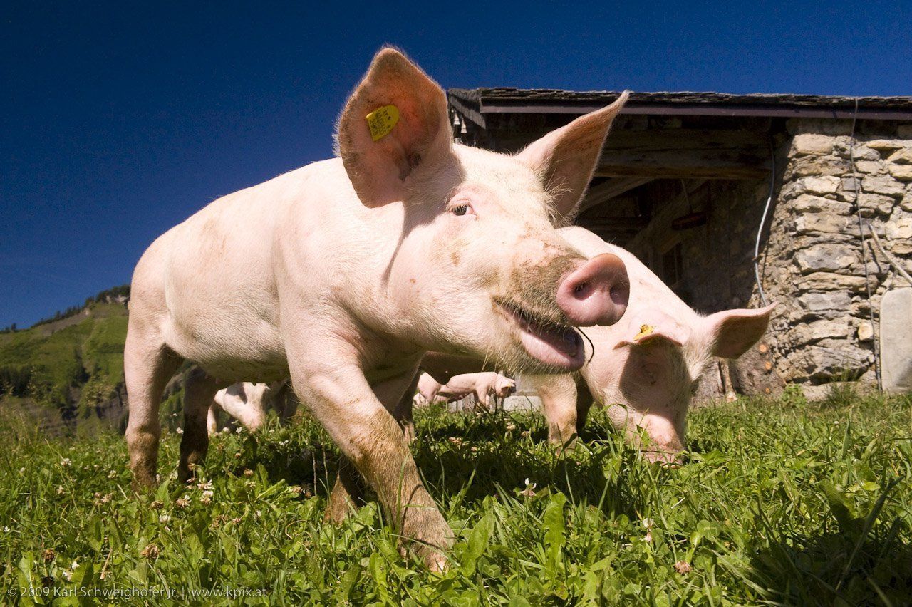 Freilandschweine auf der Alpe