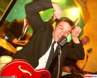 WAS: Sagenhafter Live Auftritt von Vorarlbergs Top Band Nummer 1 - The Monroes WO: Flexibel Bar, Bregenz WANN: Donnerstag, den 17.11.2005 WER: The Monroes, Mike als Gastgeber und Gäste die zur Live-Musik bis in den frühen Morgen tanzten. Im Bild: Hanno Pinter von den Monroes.
