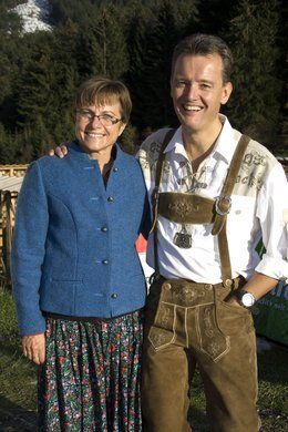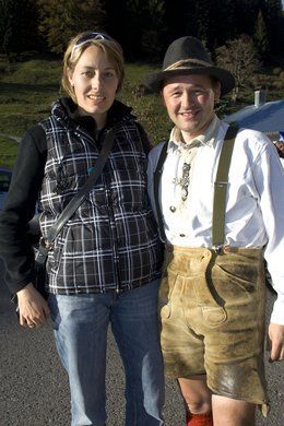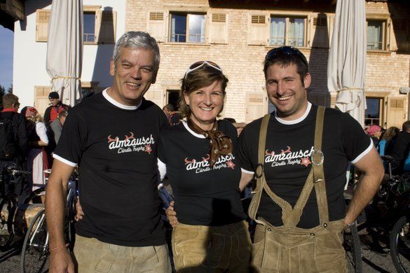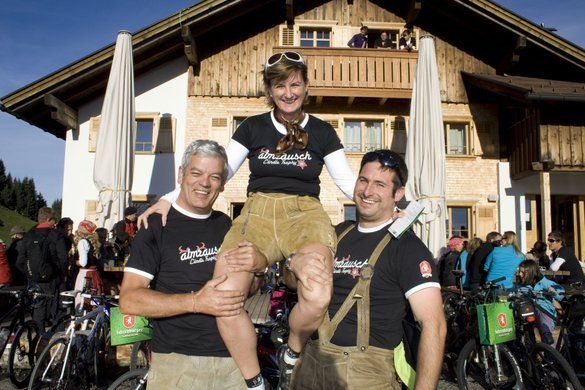 Almrauschparty in Dirndl und Lederhose