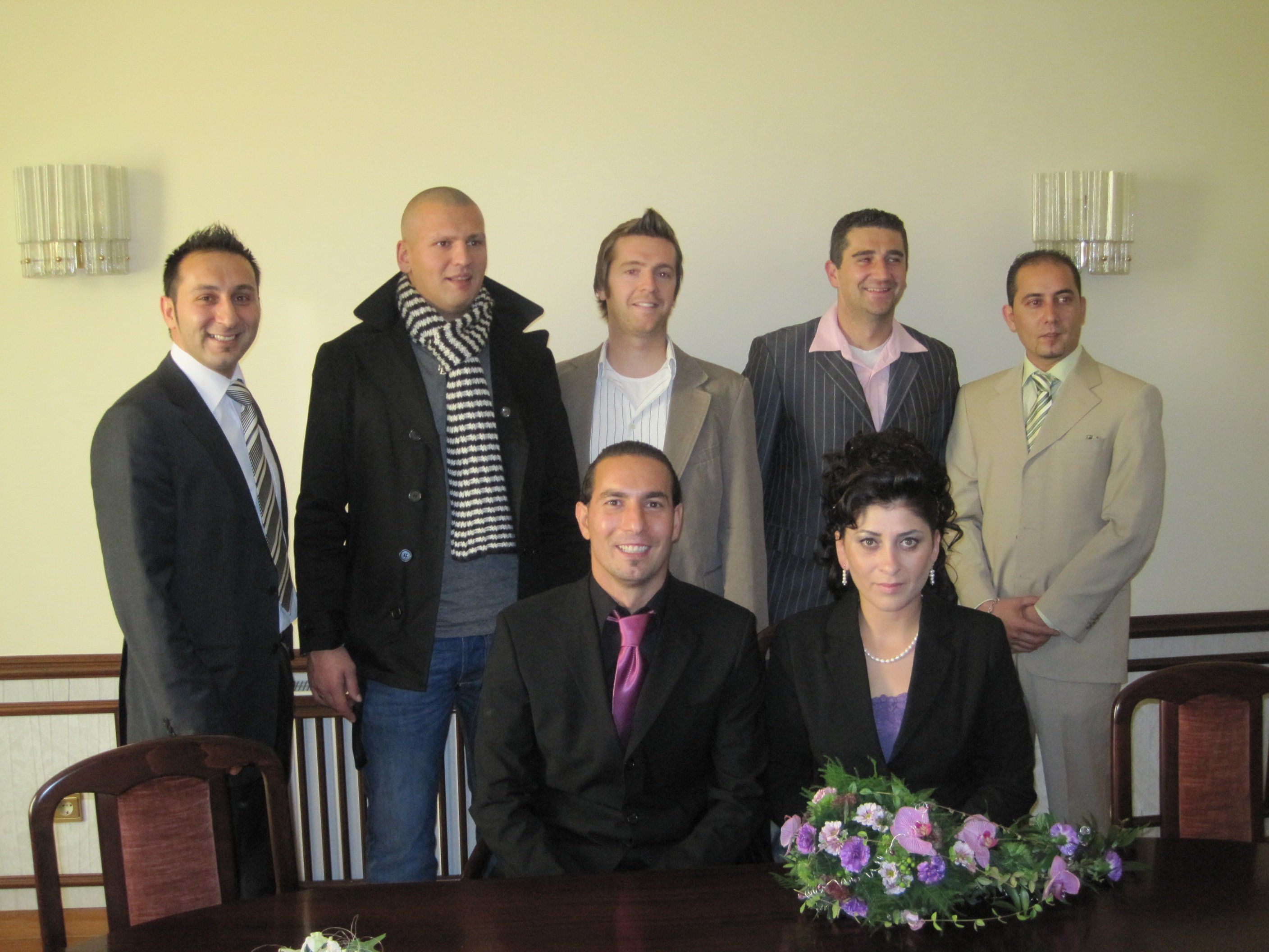 Das Brautpaar mit Freunden