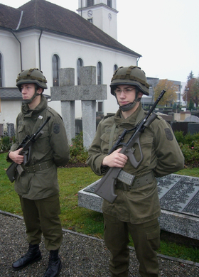 Soldaten des Bundesheeres vor dem Lochauer Kriegerdenkmal