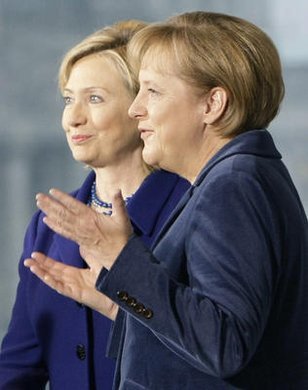 Hillary Clinton besucht Angela Merkel in Berlin.