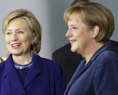 Hillary Clinton besucht Angela Merkel in Berlin.