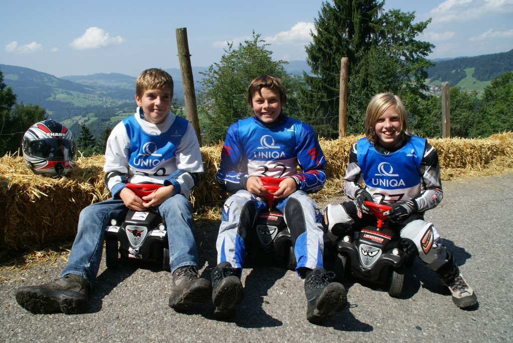 Michael, Tobias und Mathias ließen es beim Bobby-Car-Rennen in Egg so richtig laufen.