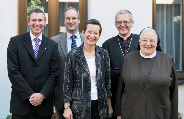 Dr. Berthold Broll, Karl Müller, Greti Schmid, Bischof Elmar Fischer und Oberin Sr. Consilia