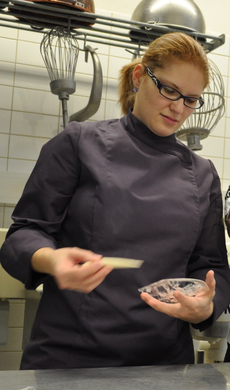 Mit dunkler oder weißer Schoki wird der Nikolaus geschminkt.