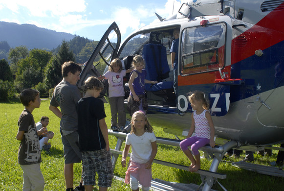 Polizeihubschrauber an der Zelfenstraße in Tschagguns. (Foto: Gerhard Scopoli, 3. Sep. 2010)