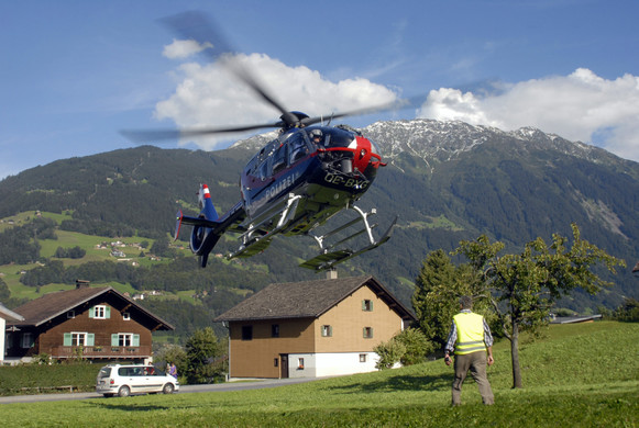 Polizeihubschrauber an der Zelfenstraße in Tschagguns. (Foto: Gerhard Scopoli, 3. Sep. 2010)