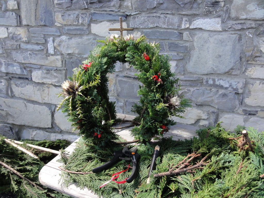Familie Johannes Mathis stellt bereits den Blumenschmuck für den Galtviehabtrieb vor.