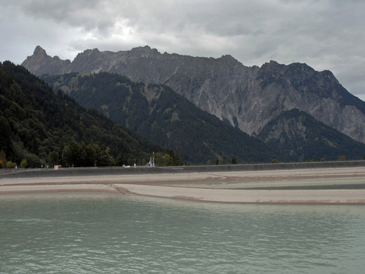 Staubecken des Lünerseewerkes Latschau in der Gemeinde Tschagguns mit Blick zur Vandanser Steinwand mit Zimba. (Foto: Gerhard Scopoli, 15. Sep. 2010)