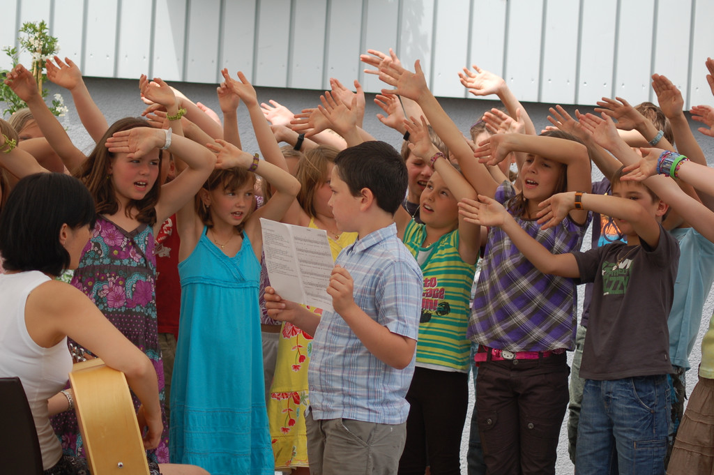 Volksschüler präsentierten beim Besuch der Jury in Langenegg den Energiesong.
