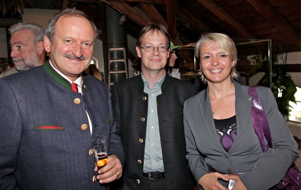 Alt-Vizekanzler Hubert Gorbach, Gemeindearchivar Thomas Welte mit Sonja Reingrabner von JTI Austria-Tabak
