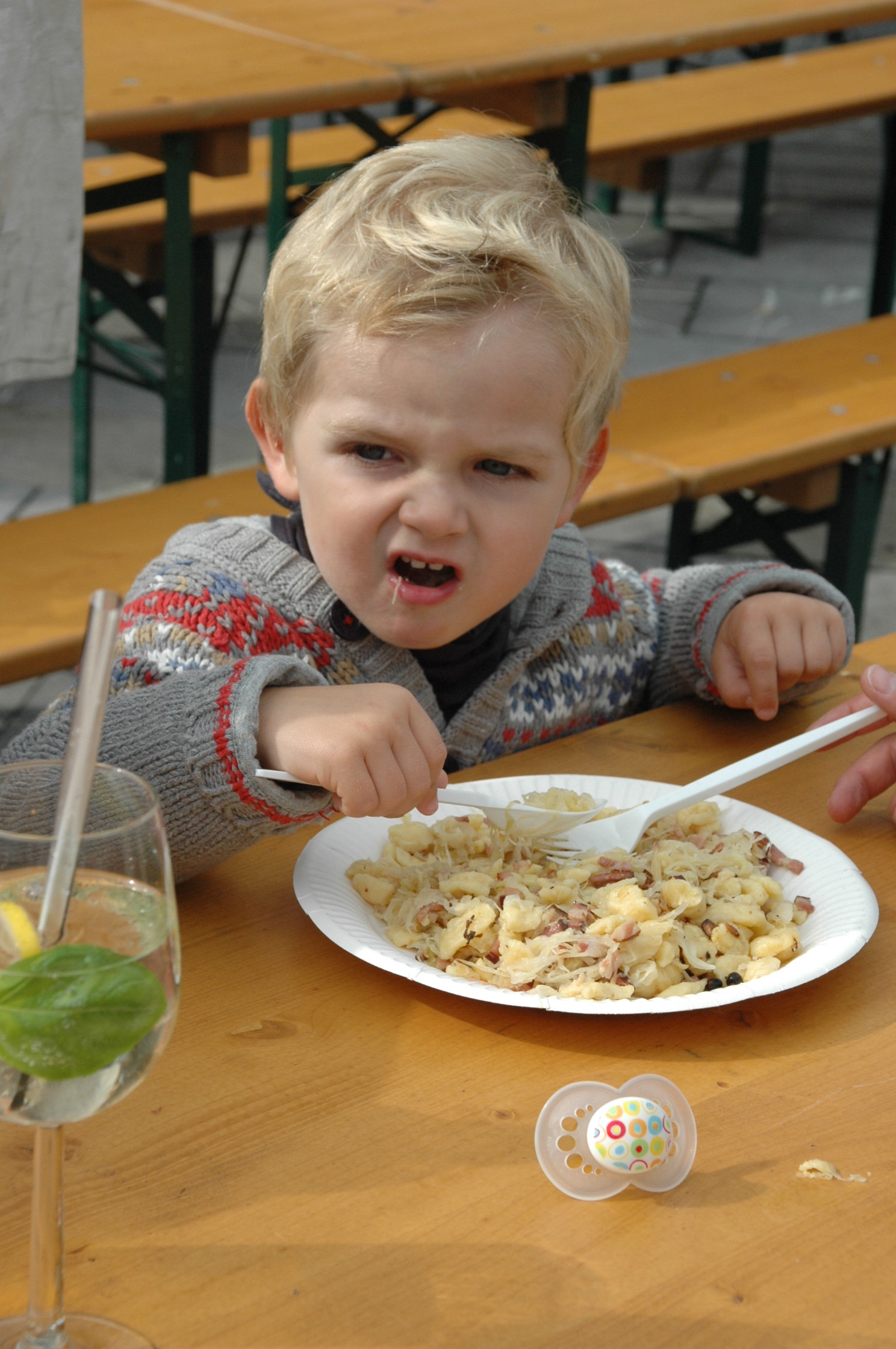 Der kleine Finn läßt sich die Krautspätzle sichtlich schmecken!