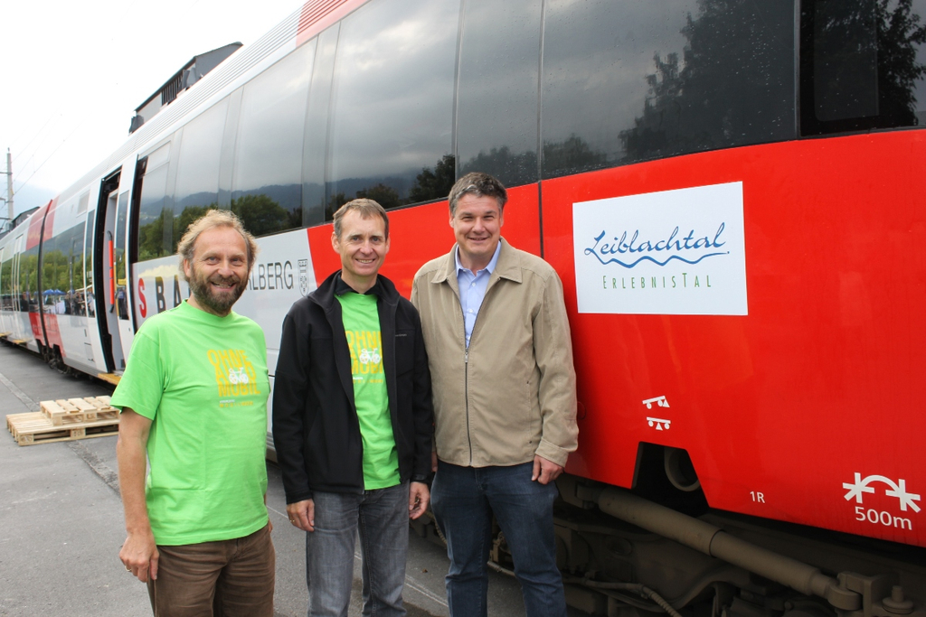 Die Initatoren des Mobilitätstages mit Zugstaufe: Markus Rabanser, Edgar Ferchl-Blum und Erhard Ploss (von rechts)