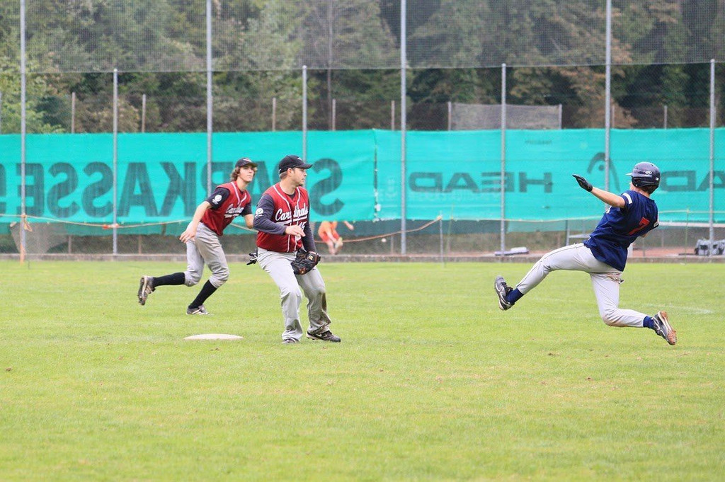 Alex Hefel ist slidet zur zweiten Base
