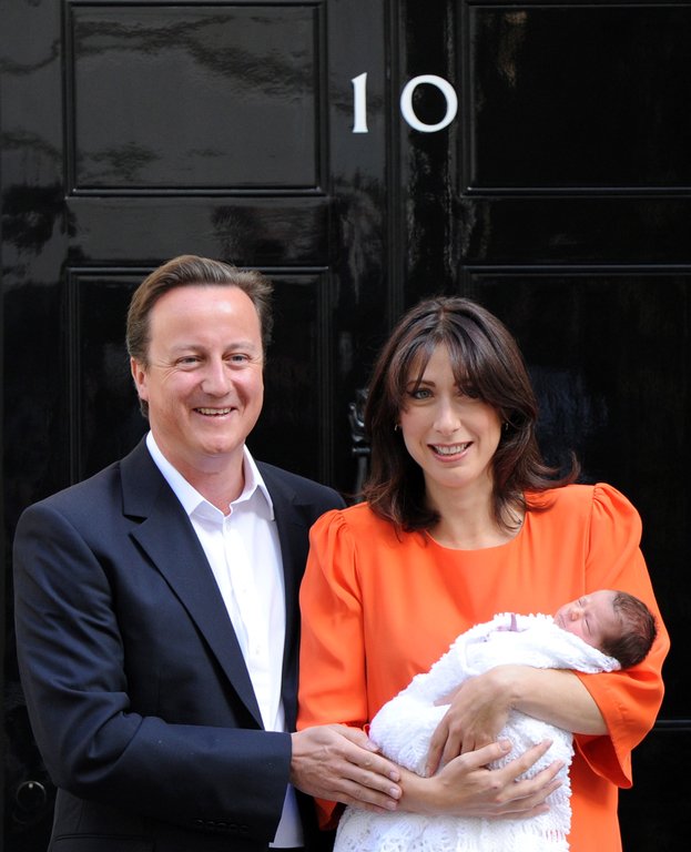David und Samantha Cameron präsentieren stolz ihren Nachwuchs