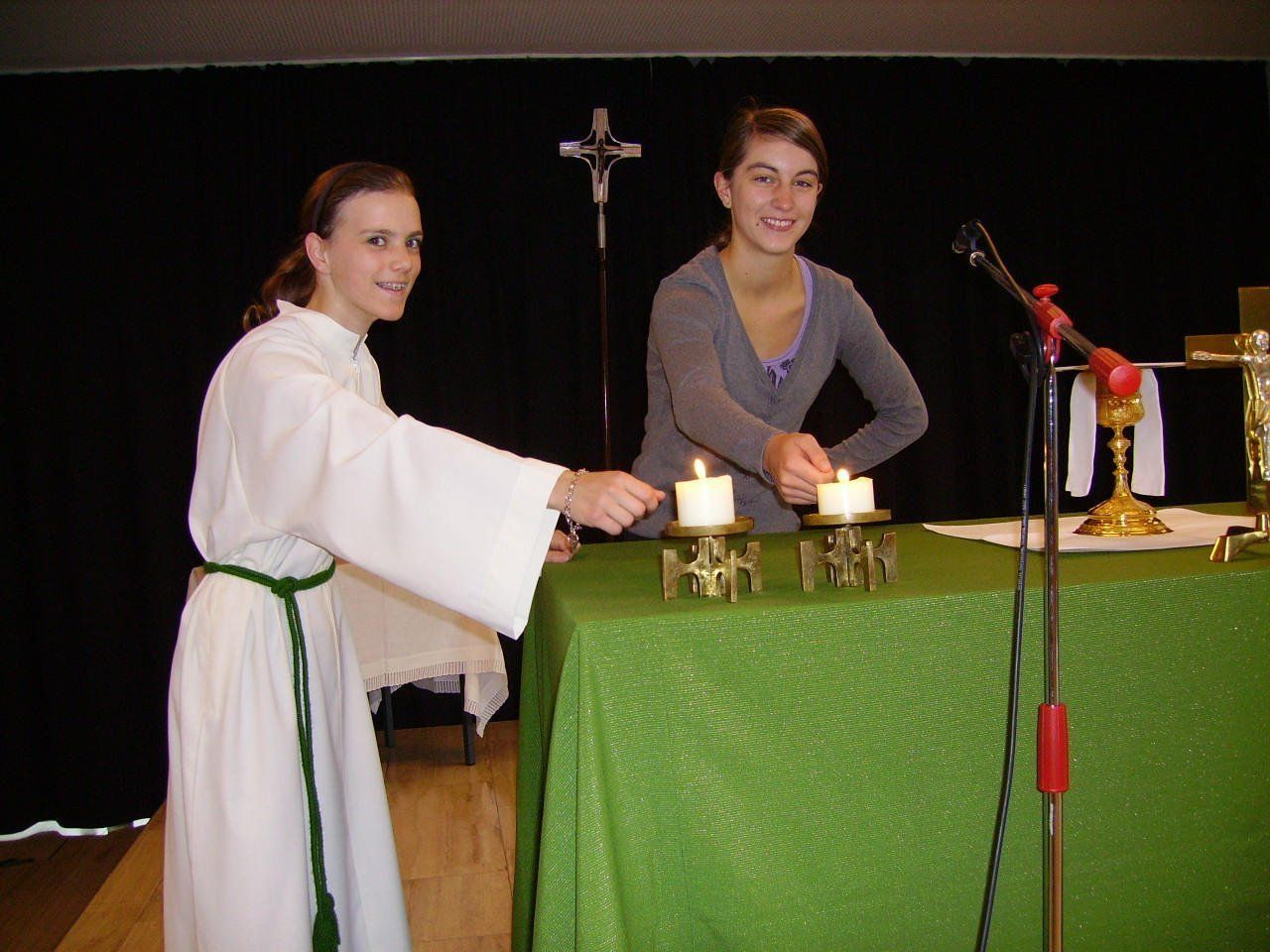 Elena und Magdalena zünden die Kerzen an.