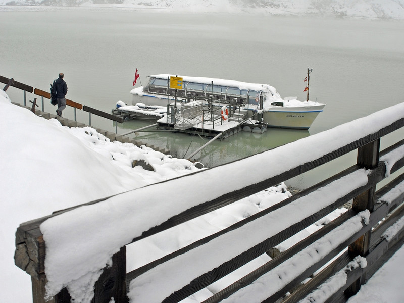 Das einzige Motorboot Europas in über 2.000 Meter Seehöhe fährt bei gutem Wetter auf dem Silvrettasee. (Foto: Gerhard Scopoli, 26. September 2010)