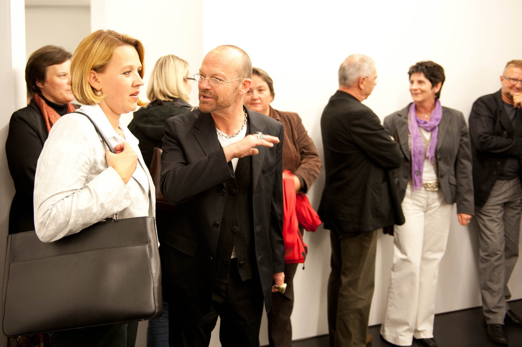 Landesrätin Andrea Kaufmann mit Künstler Wolfgang Flatz
