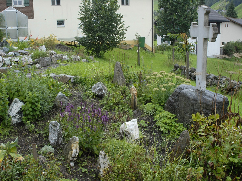 "Platz Wasser und Geist" unterhalb der Pfarrkirche Gaschurn. (Foto: Gerhard Scopoli, 31. August 2010)