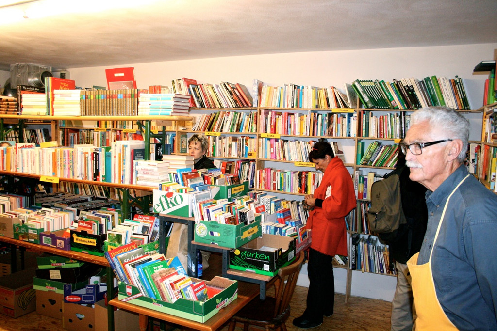 Thematisch sortierte Bücher gab es auf zwei Stockwerken