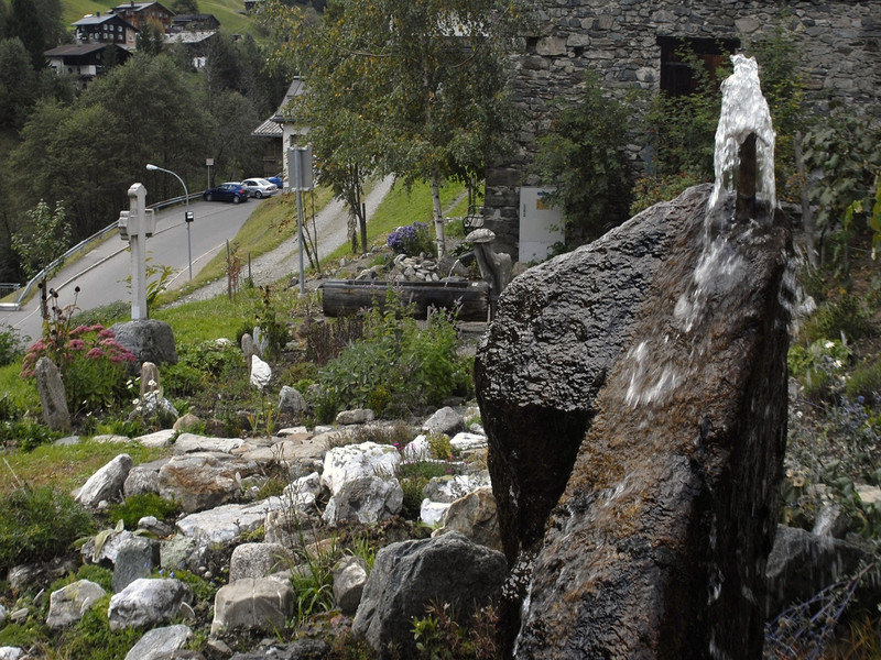 "Platz Wasser und Geist" unterhalb der Pfarrkirche Gaschurn. (Foto: Gerhard Scopoli, 29. September 2010)