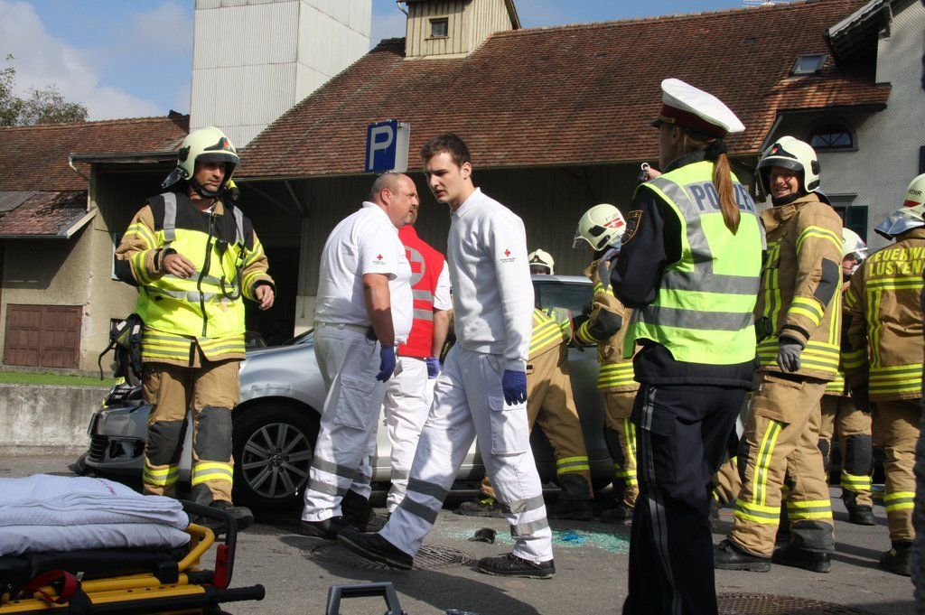 Unfall in Lustenau, Auto auf der Seite