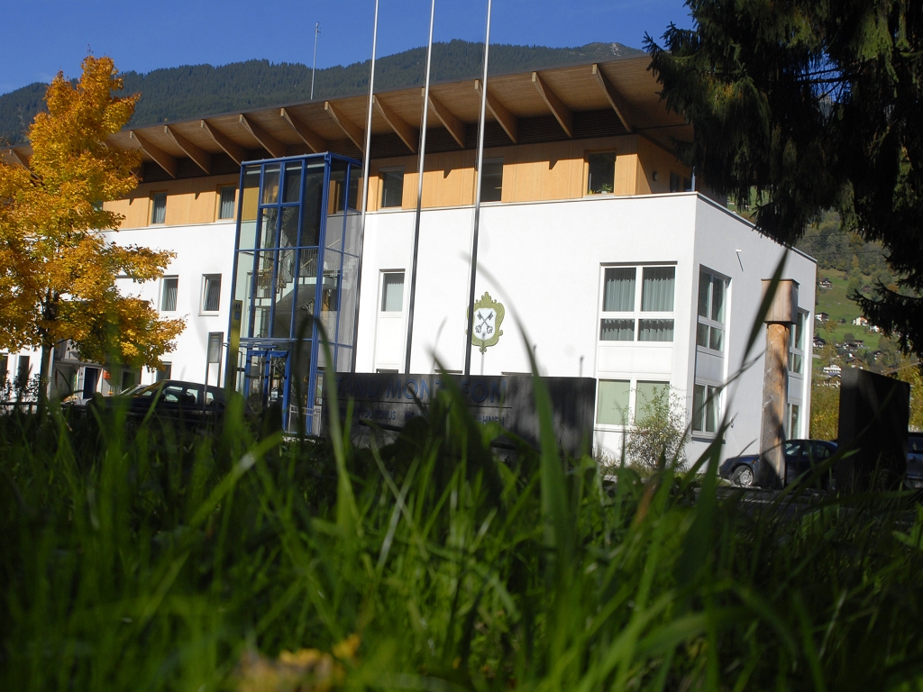Das Gebäude des Stand Montafon an der Montafonerstraße in Schruns bei herbstlichem Schönwetter.