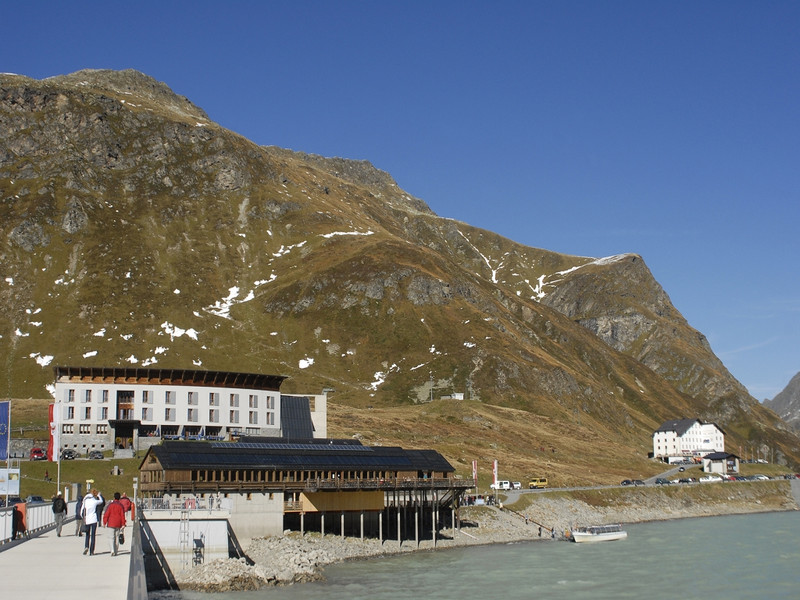 Illwerke-Haus, Restaurant Silvrettasee und Gasthaus Piz Buin auf der Silvretta-Bielerhöhe auf einen Blick. (Foto: Gerhard Scopoli, 3. Oktober 2010)
