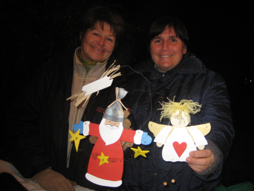Susanne und Marion priesen ihre schönen Basteleien an.