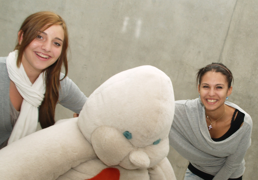 Sophie und Soraya mit einem Plüschtier