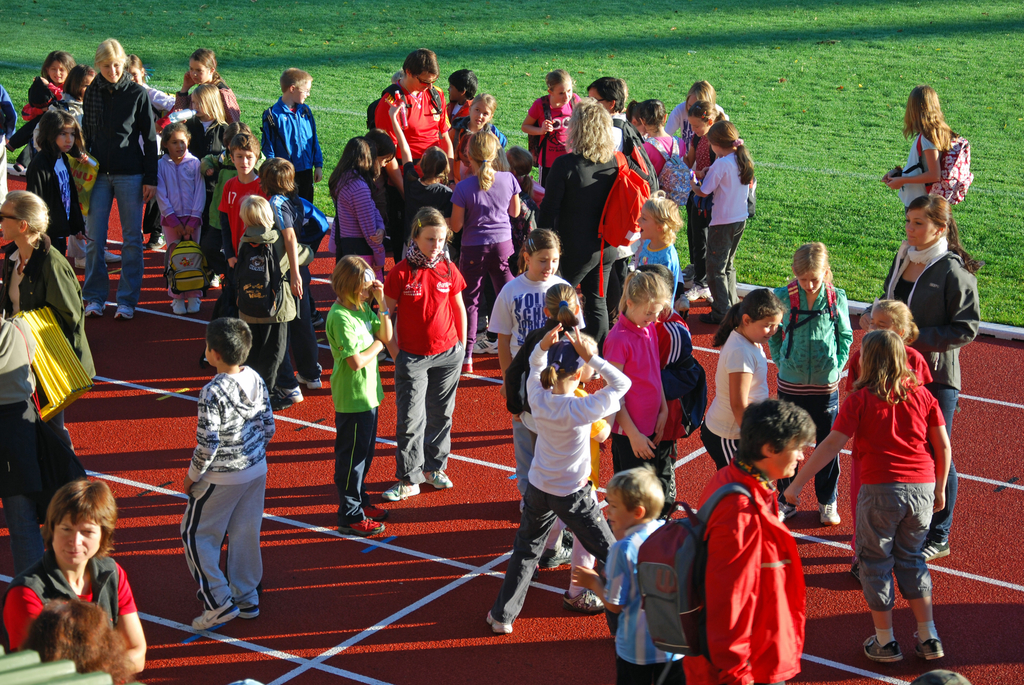 Bei wunderschönem Herbstwetter versammelten sich die Schüler auf der Birkenwiese.