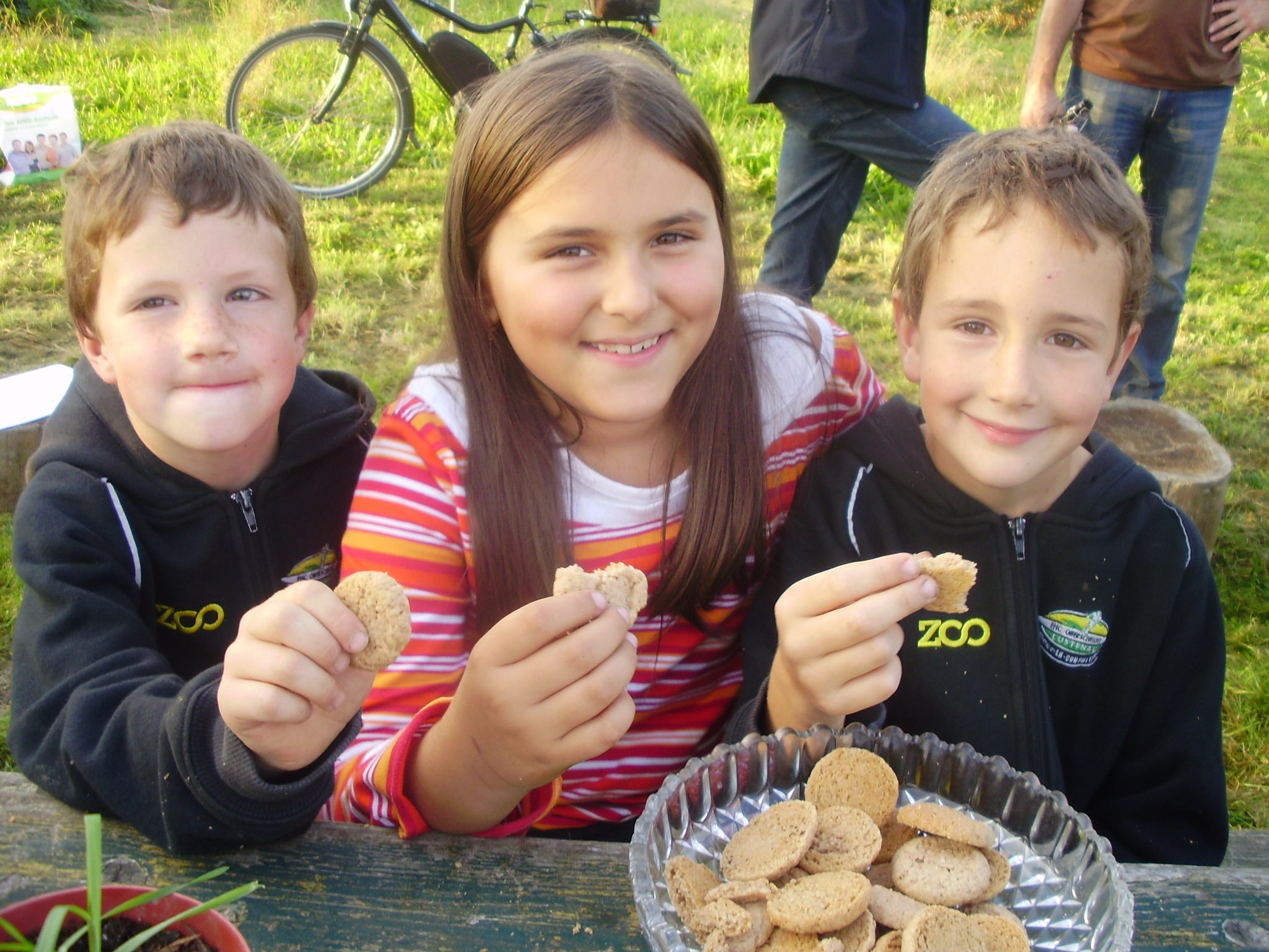 Selbstgemachte Dinkelkekse wurden von Camillo, Katharina und Vivian genossen.