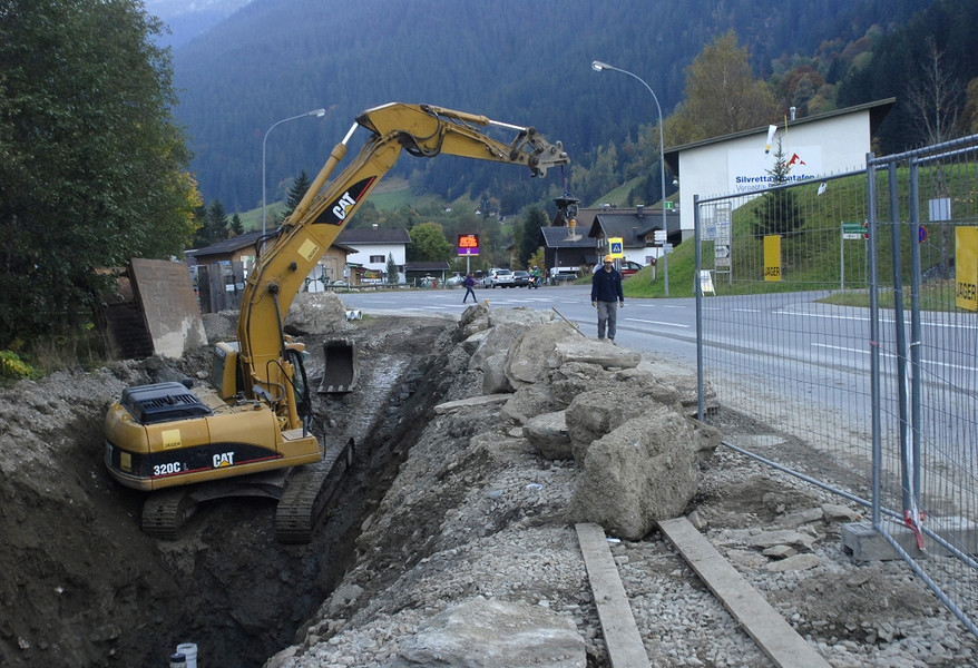 Kanalarbeiten an der Montafonerstraße in Schruns. (Foto: Gerhard Scopoli, 11. Oktober 2010)