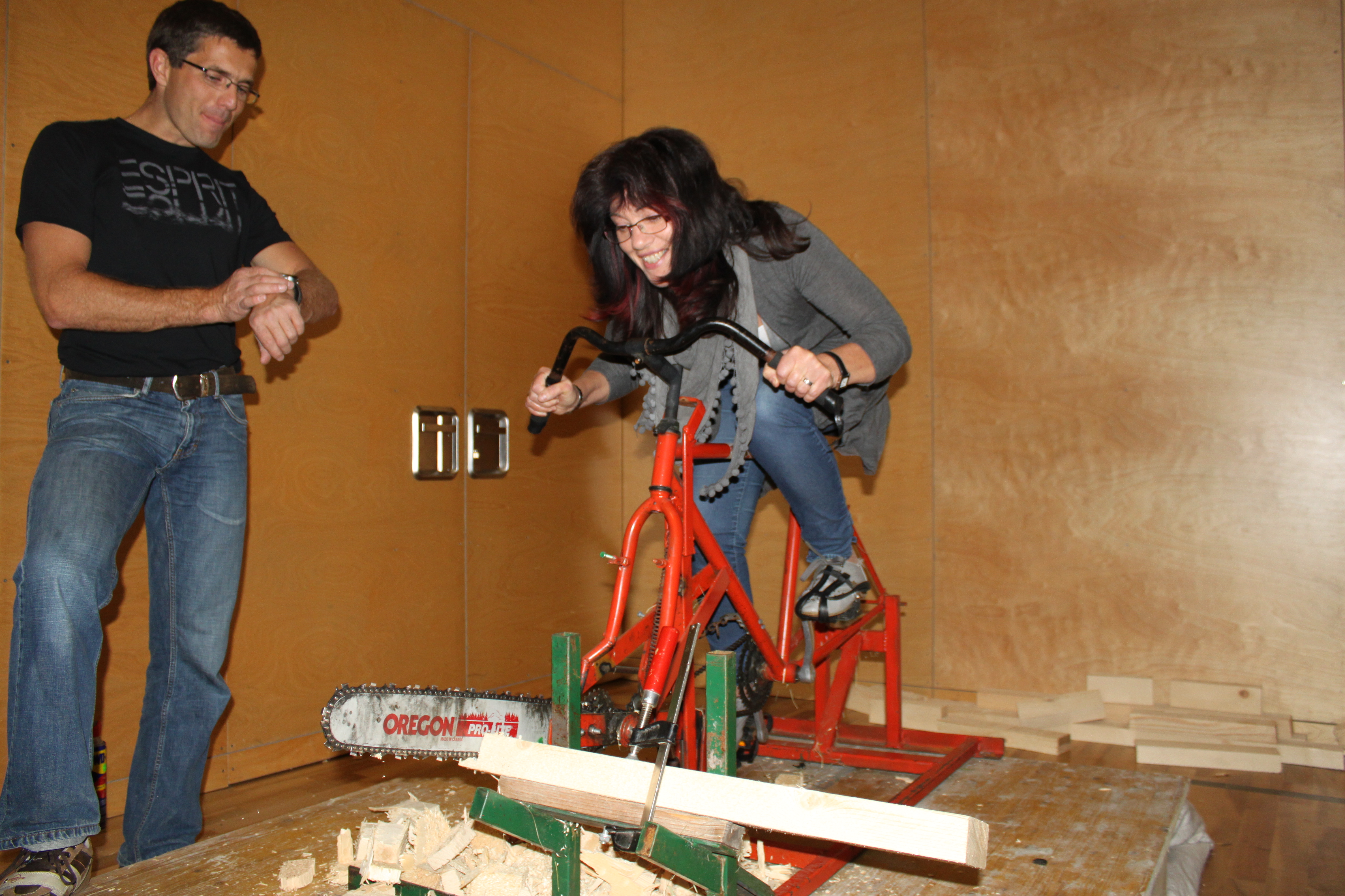 Das Fahrradsägen war für Carmen Nachbaur (Obfrau Kapellenverein) no problem.